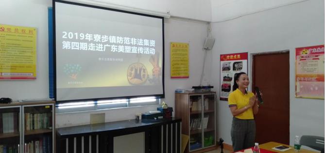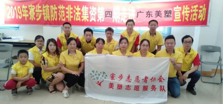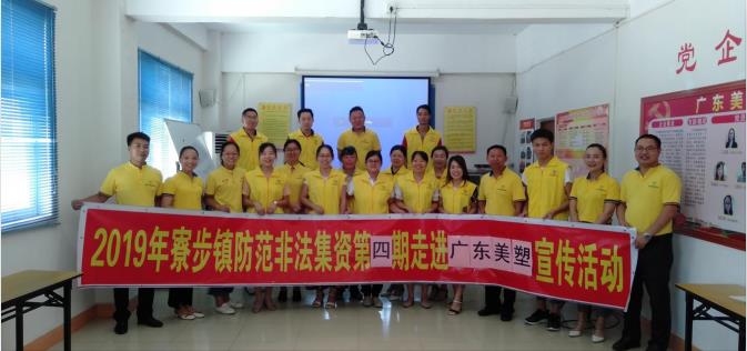 2019年6月15日上午, 寮步處置非法集資領導小組辦公室、東莞市財政局寮步分局,聯合寮步志愿者協會走進廣東美塑舉行了防范非法集資宣講會。與會人員有廣東美塑部分職工,主講老師鄭秀花等。美塑志愿服務隊協助了活動的開展。